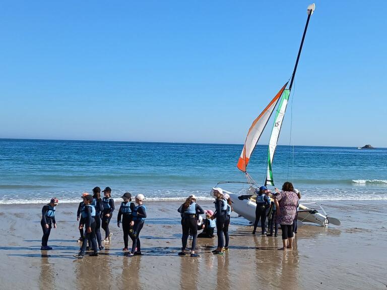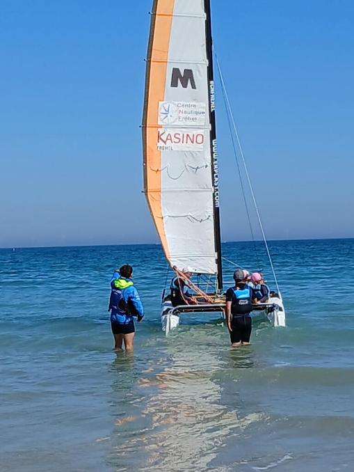 Après un cycle piscine de 10 séances pour les élèves de l'école du Marronnier du CP au CM2, les enfants du cycle 3 (CE2,CM1,CM2)qui ont obtenu le pass nautique, peuvent profiter d'un cycle voile à l'école de voile des Sables d'Or. Pour la dernière séance ils participeront à 'toute voile dehors' qui regroupera les écoles qui ont participé pour cette année scolaire 2024-2025 à l'activité voile... Activité qui a été rendue possible par le financement de l'amicale laïque.